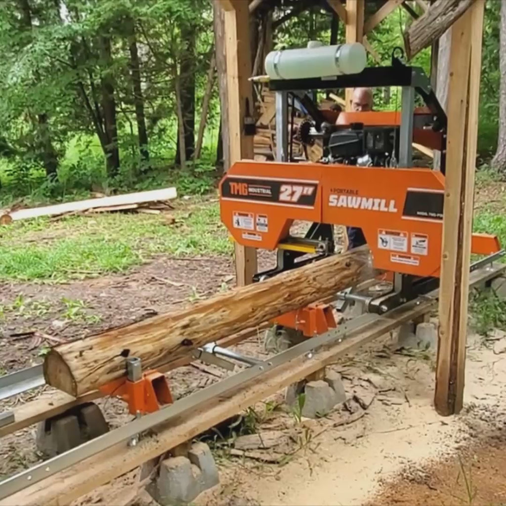 Capable of cutting logs up to 12’ long, 21" wide and 27" in diameter, you’ll be able to say goodbye to your endless trips to the hardware store. This TMG Industrial 27" portable sawmill is designed to operate anywhere, and can be easily transported and modified to fit your every need. We also have a 4’ add-on extension for the trackbed on this saw, all combined to make it one of the most versatile and competitive products on the market today.